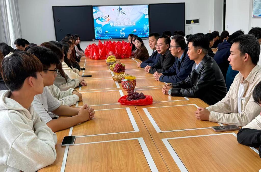 10月6日,化工学院于实验楼318活动室组织开展国庆假期留校学生中秋座谈活动。副校长文云同志当日值班期间出席活动,与化工学院领导班子成员、辅导员及40余名留校学生代表共同参与,共话家国情怀,传达节日问候。
