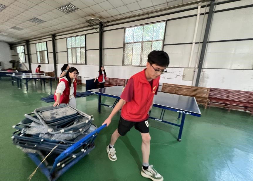 活动中,志愿者们分组协作,重点对体育馆器材室、仓库及周边区域进行深度清理。同学们将陈旧损坏的篮球架、体操垫、废旧椅子等物品分类归置并妥善处理,对留存可用的器材进行了细致擦拭与保养维护,规划了各类器材的摆放区域,确保存放规范有序。经过努力,体育馆环境安全整洁,面貌焕然一新。此次活动不仅优化了场馆设施,更生动传递了“爱护公共设施、共建共享美好校园”的理念。