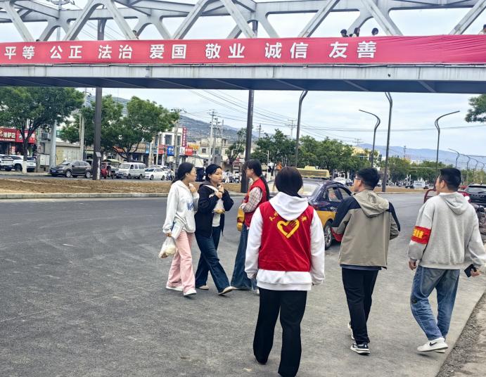 本次活动在吸取前期经验教训的基础上,扩大了活动范围、延长了活动时段,目的是更有效地引导同学们养成文明的交通习惯。活动当天,志愿者们分布在学校的主要交通路口、家属院等关键区域。他们身着统一的志愿服装,手持小喇叭,耐心地规劝行人使用天桥过街,对逆行、走路时看手机、骑车时不戴头盔等不文明交通行为进行柔性引导,为营造更加安全的校园交通秩序贡献自己的力量。