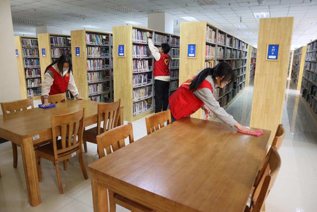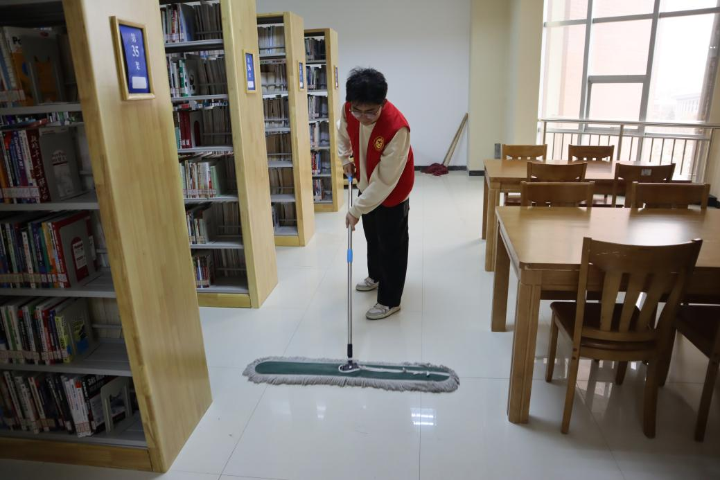 活动期间,志愿者们分工明确,协作有序。同学们擦拭书架层板、整理各类书籍及桌面杂物,对阅览区地面进行了彻底清扫。通过辛勤劳动,图书馆面貌焕然一新,为同学们创造了更加宜人的学习与阅读空间。