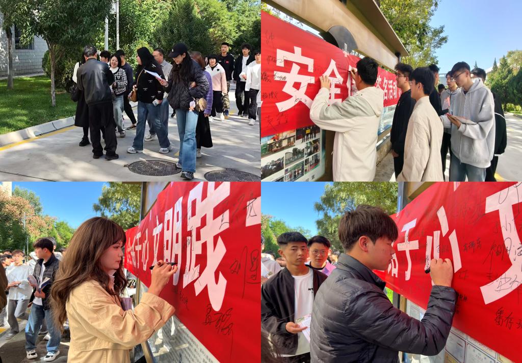 活动现场,师生们认真阅读交通安全倡议书,深入了解交通安全知识及相关风险防范要点,并在“交通安全承诺”横幅上郑重签名成为行动的起点。同学们表示,通过此次活动,更加认识到交通安全无小事,严格遵守交通规则,拒绝危险行为,今后将做安全理念的传播者、签名承诺的守护者、文明交通的践行者。