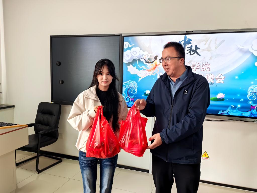 活动现场布置温馨,桌上摆满了各式各样的月饼和水果,营造出浓厚的节日氛围。文云副校长首先向留校学生表达了节日的问候,并鼓励大家要珍惜在校时光,努力学习专业知识,将来为国家和社会做出贡献。随后,学生们纷纷发言,分享了自己对家国的理解与感悟,以及在假期中的学习生活情况,现场气氛热烈而融洽。
