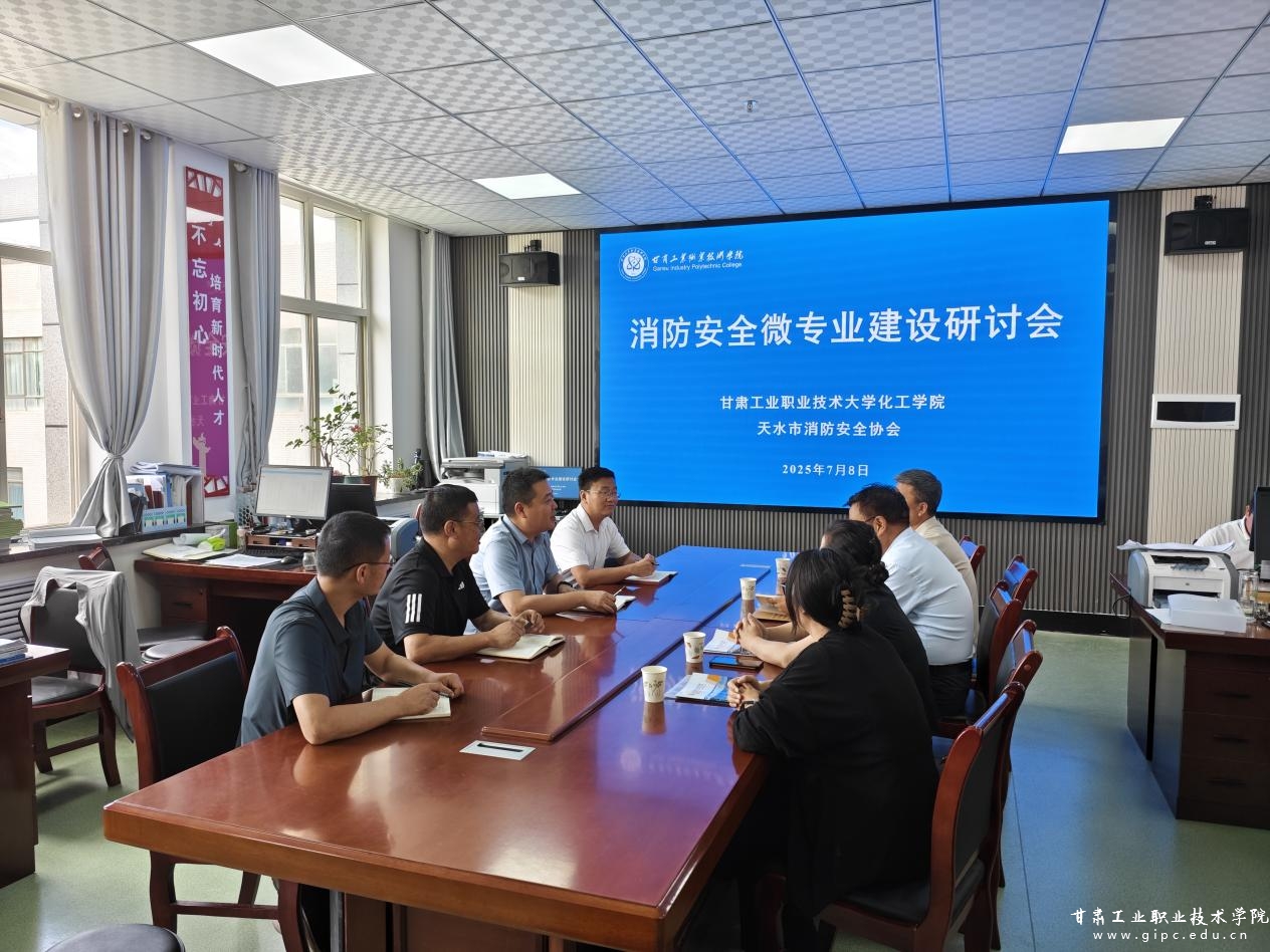 7月8日,化工学院与天水市消防安全协会在实验楼318办公室联合召开“消防安全微专业建设”专题研讨会。甘肃卫安职业技能培训学校校长雷新有、市消防协会副会长周焱、副秘书长何彩玲,化工学院院长张宏、副院长韩诚仪,以及环境监测技术专业主任、应用化工技术专业主任参加会议。