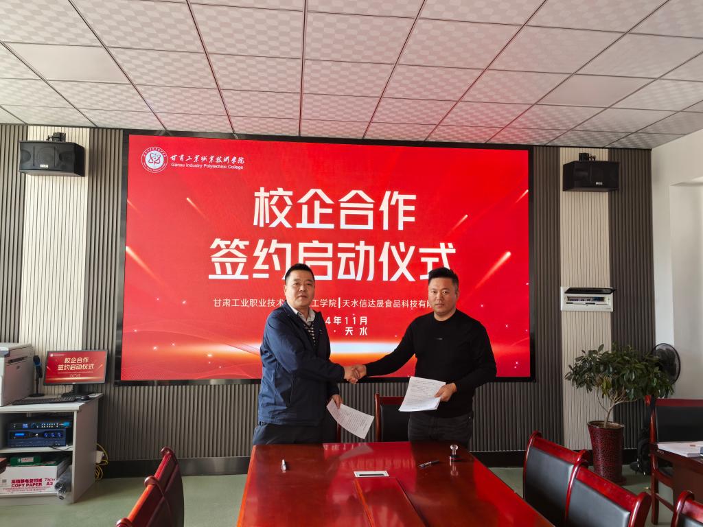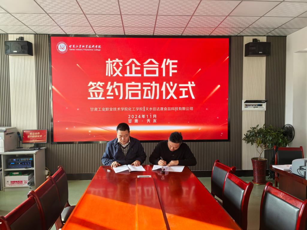 为拓展校企合作广度和深度,实现人才培养精准对接,11月21日,化工学院与天水信达晟食品科技有限公司在实验楼318举行了校企合作签约启动仪式。化工学院院长张宏、天水信达晟食品科技有限公司代表魏强龙参加签约仪式。