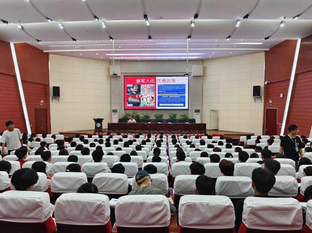 金秋九月,我院迎来了一批满怀梦想的新生。为积极响应国家号召,鼓励优秀学子投身国防,9月11日,化工学院征兵工作宣讲会在图书馆五楼智敏报告厅举行。学院领导班子成员、各专业负责人、辅导员、新生班主任及2024级全体新生参加会议。