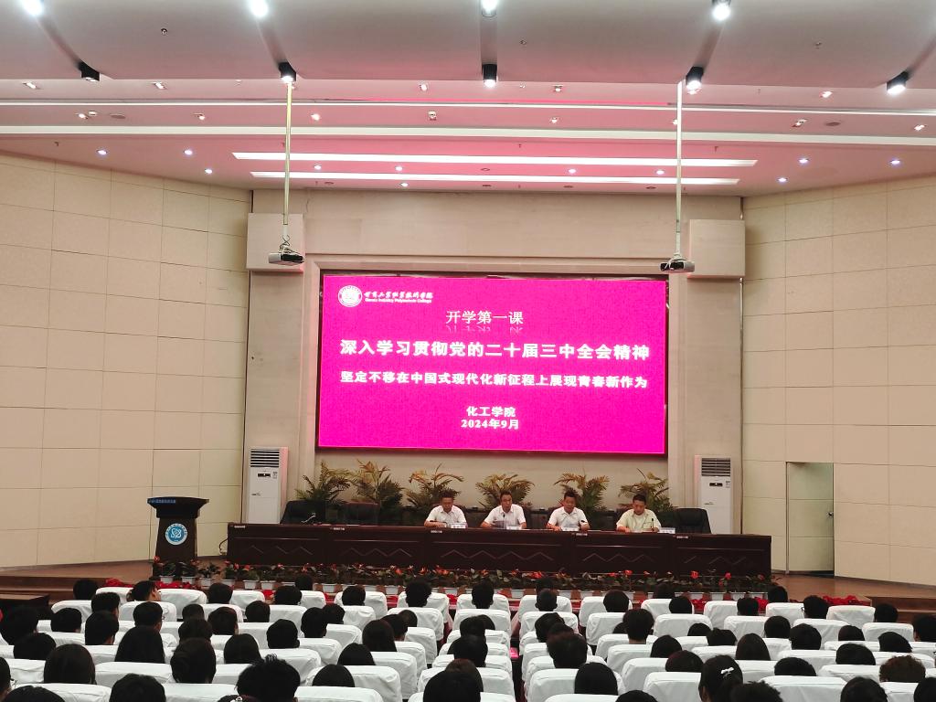 凝心聚力启新程,奋楫笃行向未来。新学期,化工学院迎来了数百名新面孔,为扎实做好2024级新生入学教育工作,引导新生扣好大学第一粒扣子,9月7日下午,化工学院在图书馆智敏报告厅召开2024级新生开学第一课暨入学教育大会。化工学院领导班子成员,各专业负责人、辅导员、新生班主任及2024级全体新生参加。