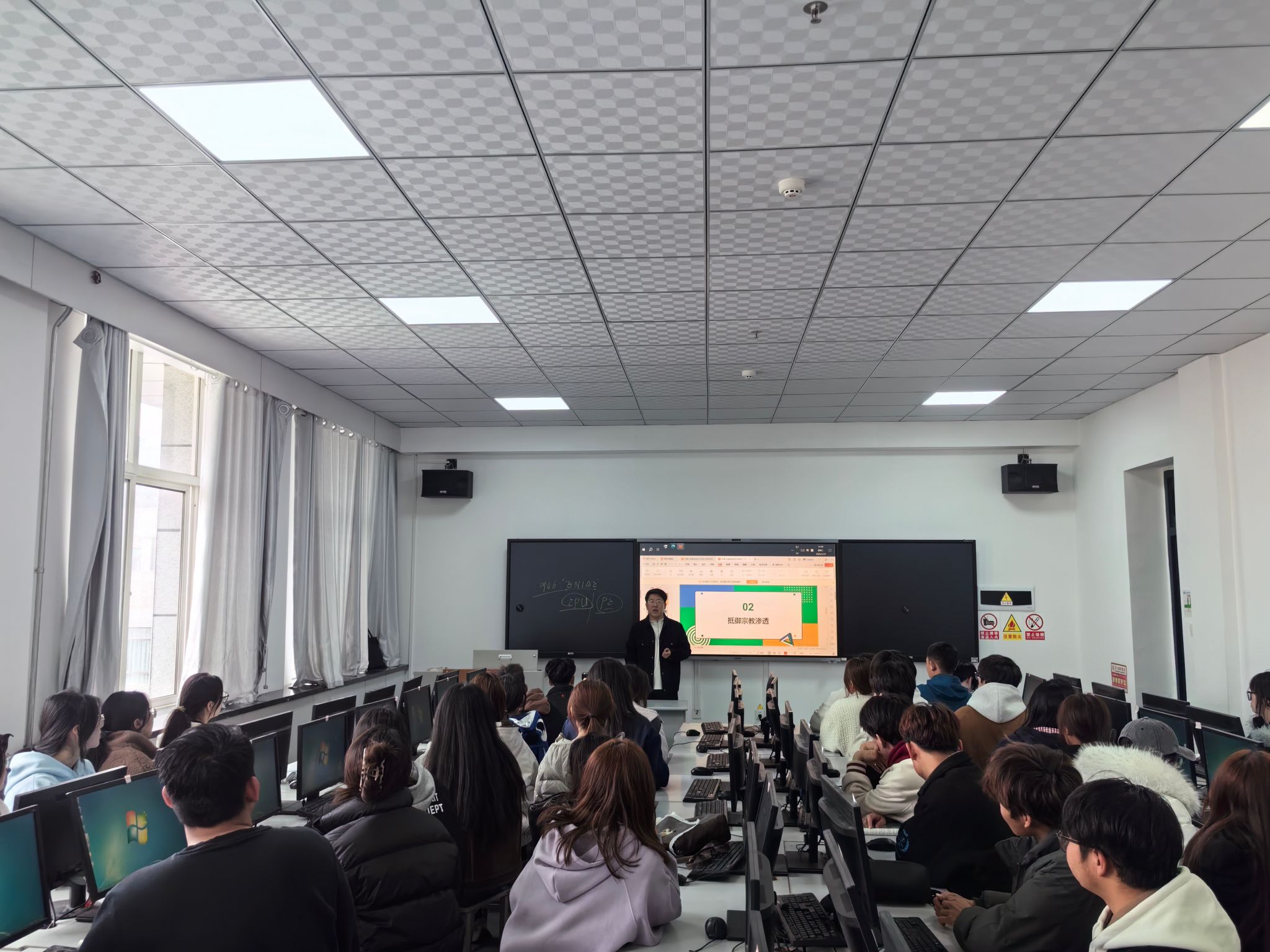 活动聚焦学生成长关键需求,把安全教育、法治教育、日常行为规范教育作为核心内容,重点开展抵御和防范宗教渗透、防范电信网络诈骗、校园消防安全、实验室安全、交通安全等专题宣讲。班主任结合典型案例、真实场景剖析,用通俗易懂的语言讲解各类风险隐患,强化学生法治意识、安全防范意识和自我保护能力,引导学生严守校规校纪,恪守行为底线,营造平安和谐的校园氛围。