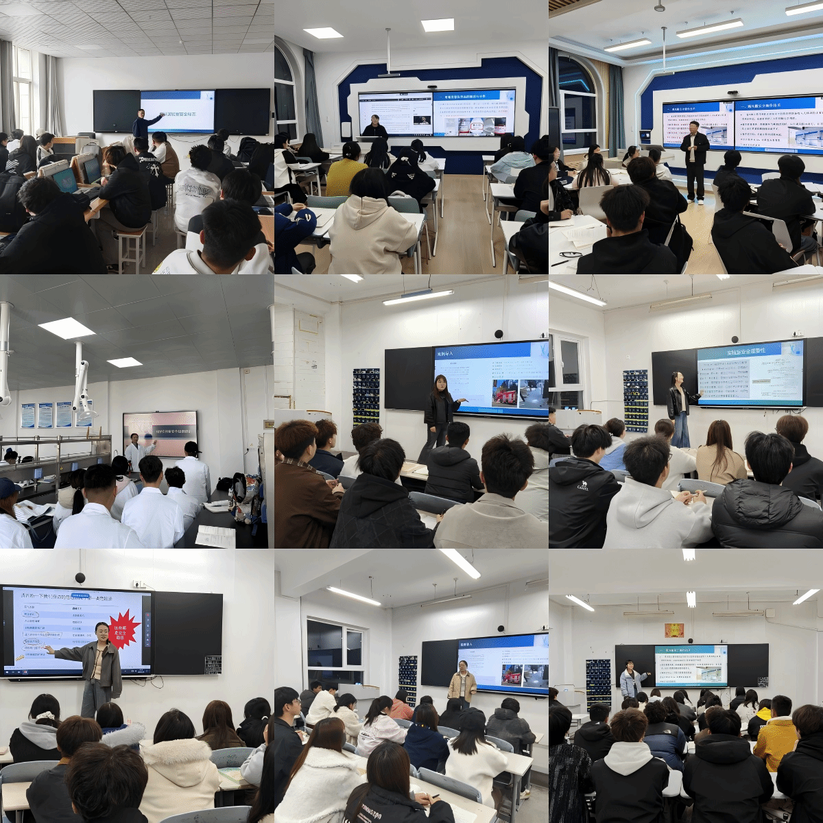 本次安全检查工作从三个维度全面展开:一是对学院实验室开展全覆盖、无死角的排查,建立台账并落实对号整改;二是面向全院教职工组织实验室安全知识专题培训;三是针对全体学生开展实验室安全教育。结合各专业特点,重点围绕实验操作规程、危险化学品管理、应急事件处置等内容进行系统讲解,通过案例分析、现场演示等形式,切实提升学生安全知识掌握水平和应急处置能力。