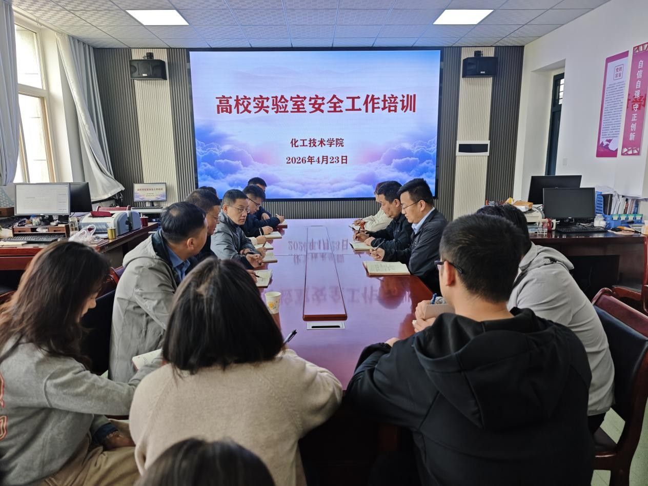 为深入贯彻落实教育部关于高校实验室安全工作的统一部署,全面提升学院实验室安全管理规范化、精细化水平,切实筑牢教学科研安全防线,4月23日上午,化工技术学院在知行楼318会议室组织集中学习,全体参会人员同步参加教育部2026年高校实验室安全工作线上培训会。学院领导班子成员、各教研室主任、实验管理人员及全体教师参加本次培训。